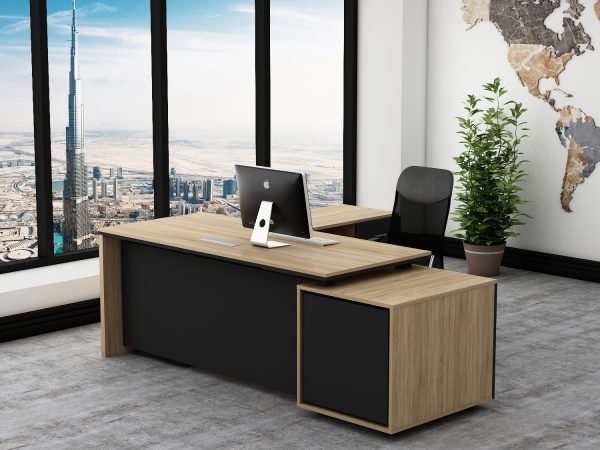 L -shaped table. Table Top:- 32 mm. High Quality MDF in Matt finish Lamination Imported PVC High quality Hardware...