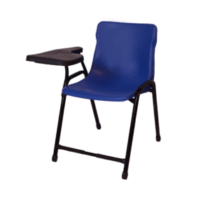 WOODART-786-S – Steel Plastic Study Chair | Blue Molded Shell, Fixed Writing Pad, Black Steel Frame