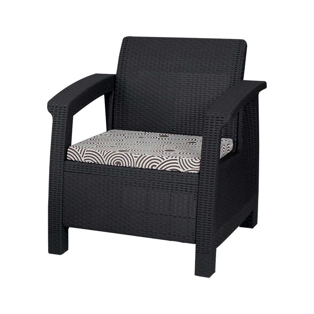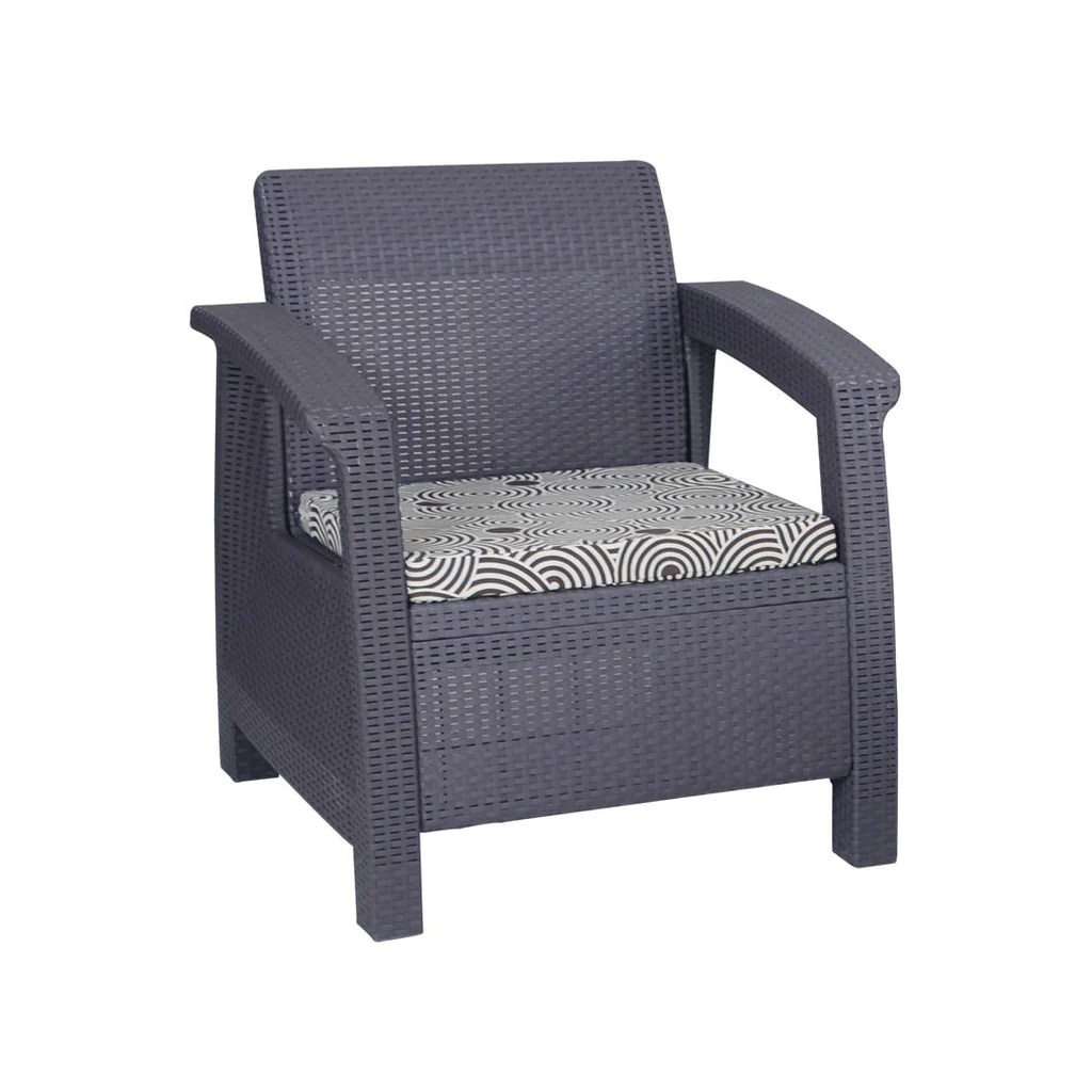 Boss Rattan newly designed pure plastic rattan single seater sofa with printed cushions.