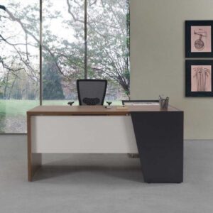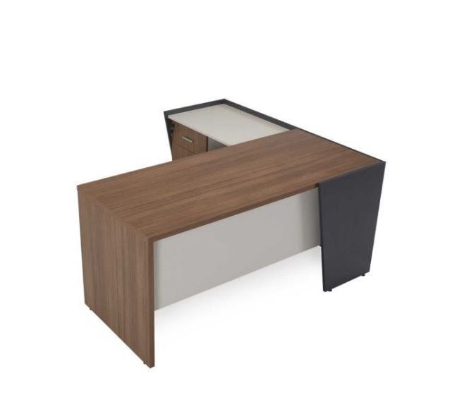 - L-shaped table with attached Side Rack