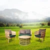 Add effortless elegance to your outdoor space with this 4-piece set featuring a natural-toned rope-woven frame and charcoal cushions. The set includes a two-seater sofa, two single seater sofa and an open-frame round coffee table—perfect for gardens, patios, and lawns.