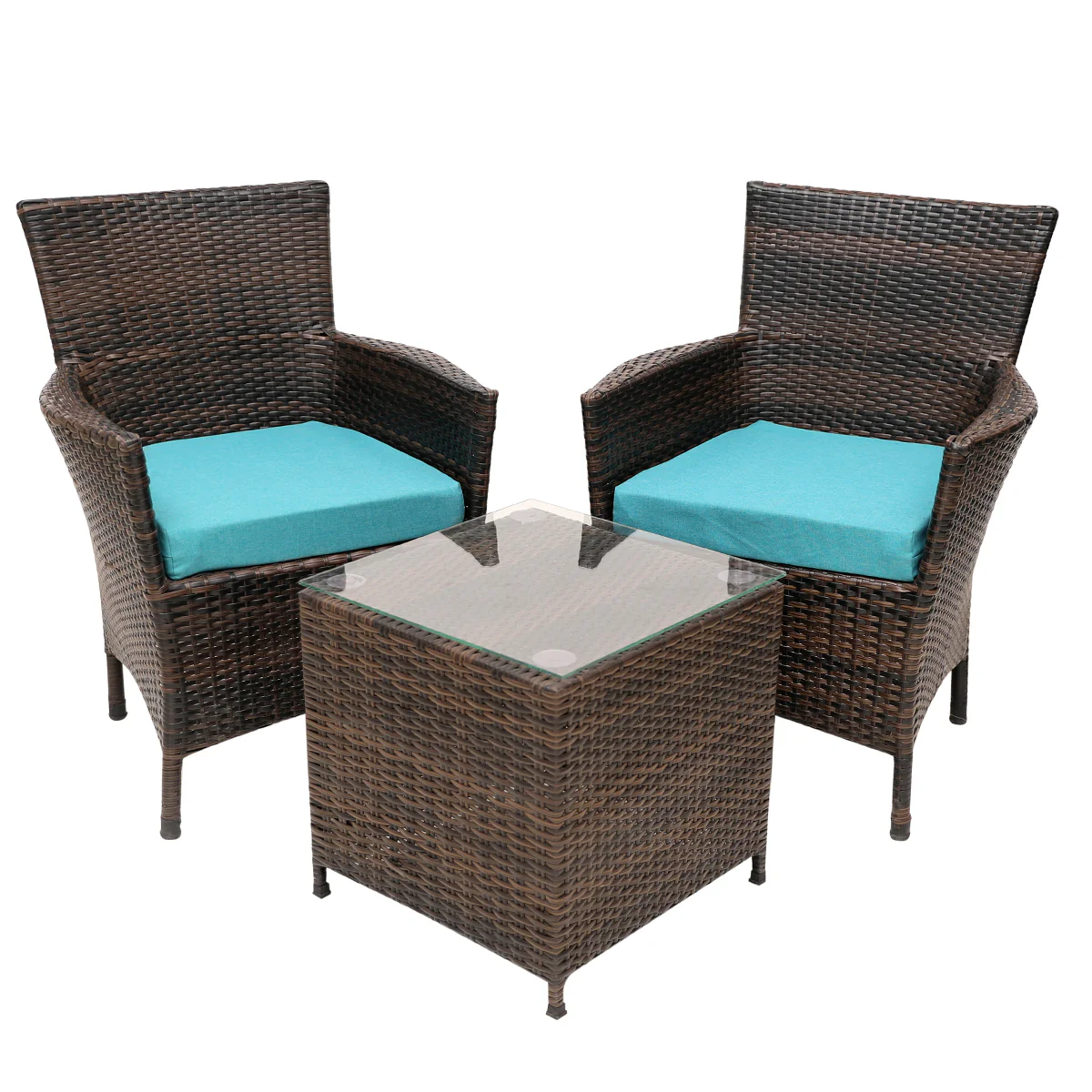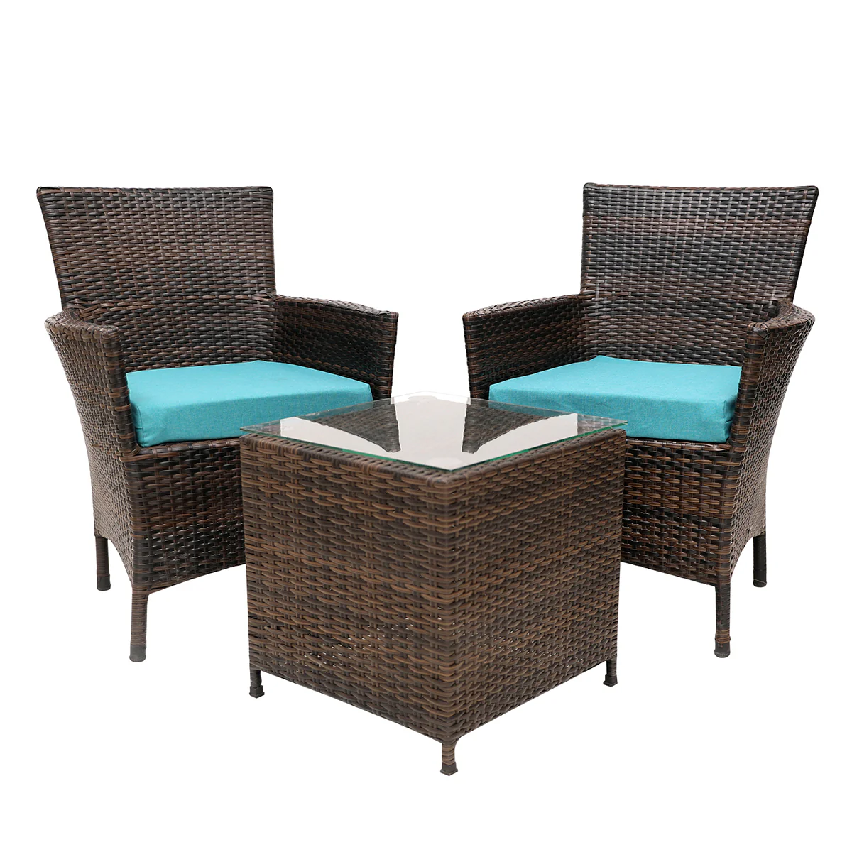 This 2-piece rattan chair set & 1 table will make a great addition to your outdoor space.