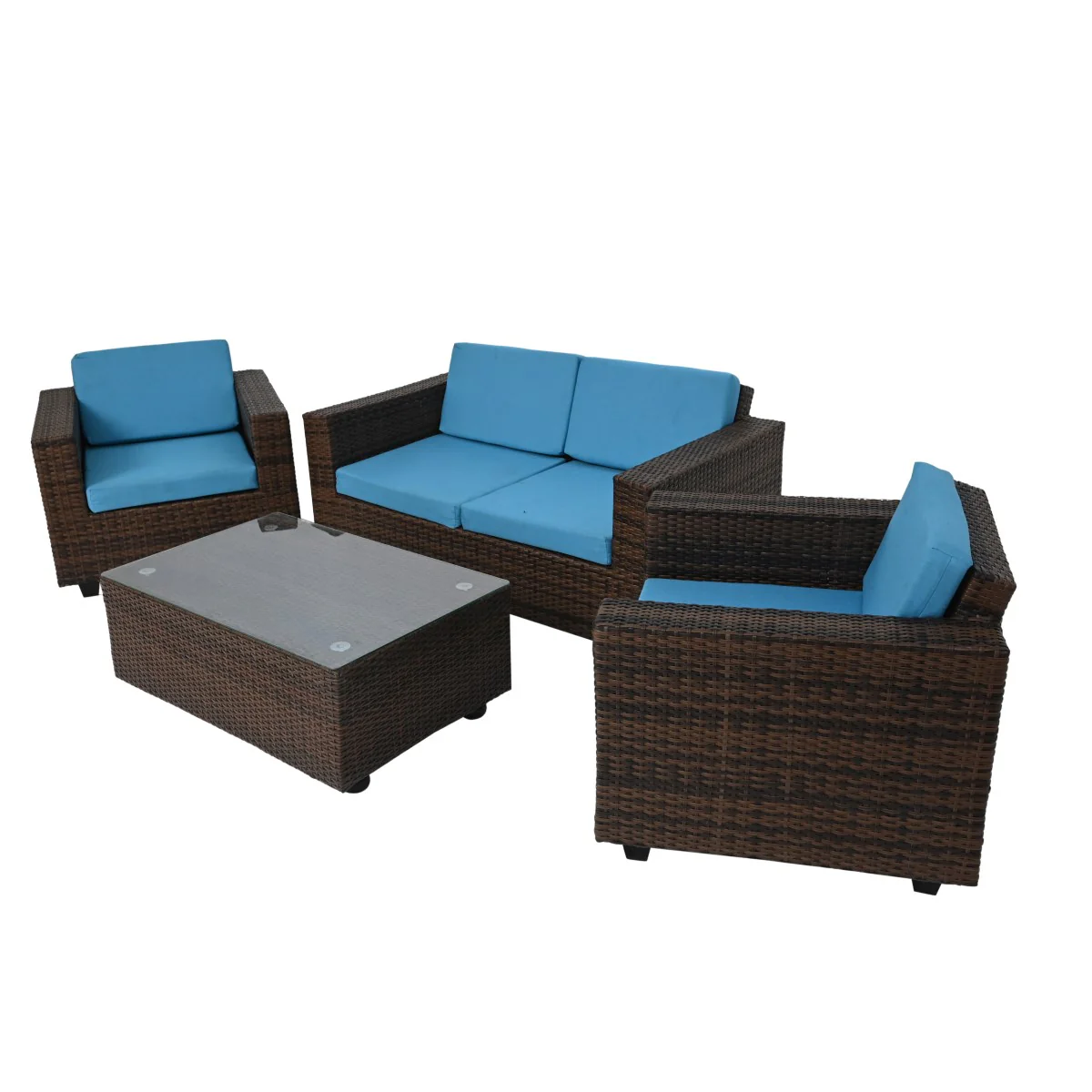 STYLISH CENTER TABLE: A large square rattan table creates a centerpiece for the sectional and is covered with a 5mm thick tempered glass topper for both style and ease of cleaning.