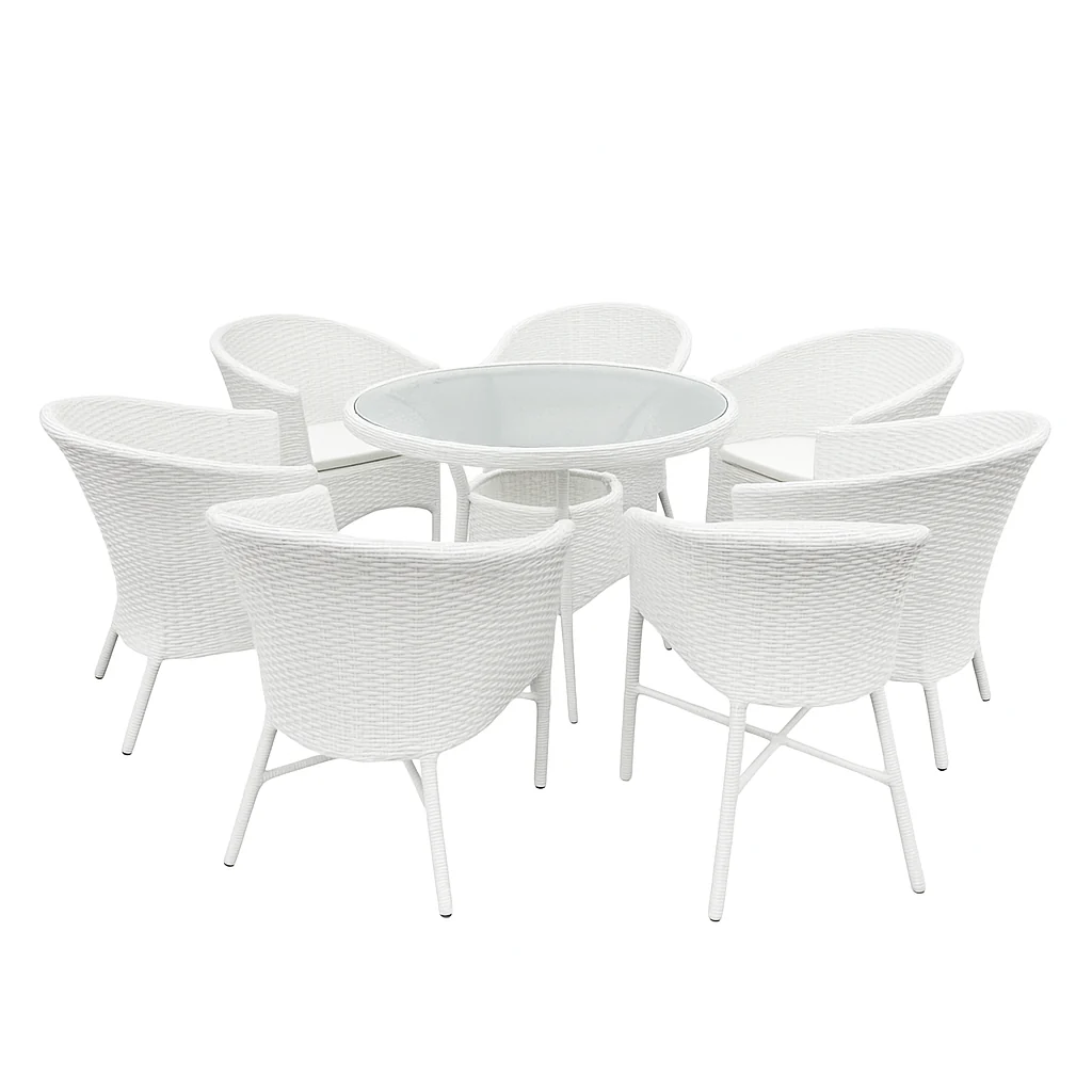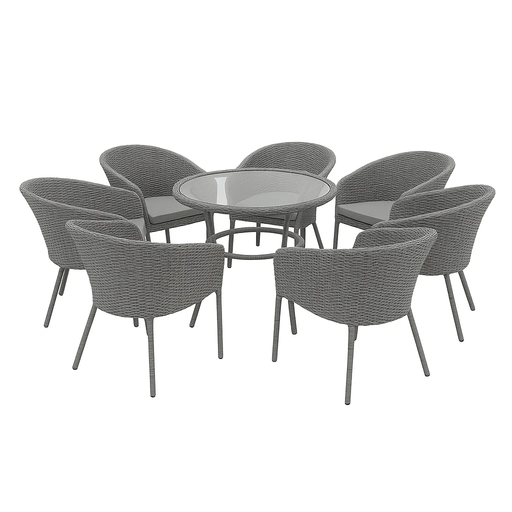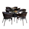 Dine in style with this elegant 4-seater rattan dining set, featuring a 30″ round glass-topped table and chocolate-toned woven chairs with comfortable armrests. Perfect for morning brunches or starlit dinners, it’s built to elevate any outdoor space.