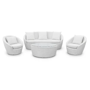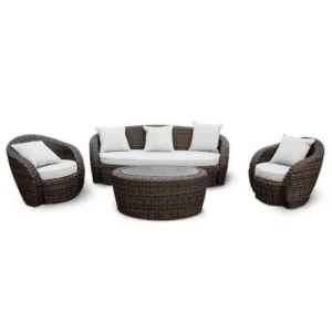 The Cut Missile Sofa Set blends rustic elegance with comfort. Featuring a three-seater sofa, two seater sofa, and a 36″ round glass-topped table, this set is crafted with rattan and cushions. Perfect for relaxing conversations and outdoor gatherings.