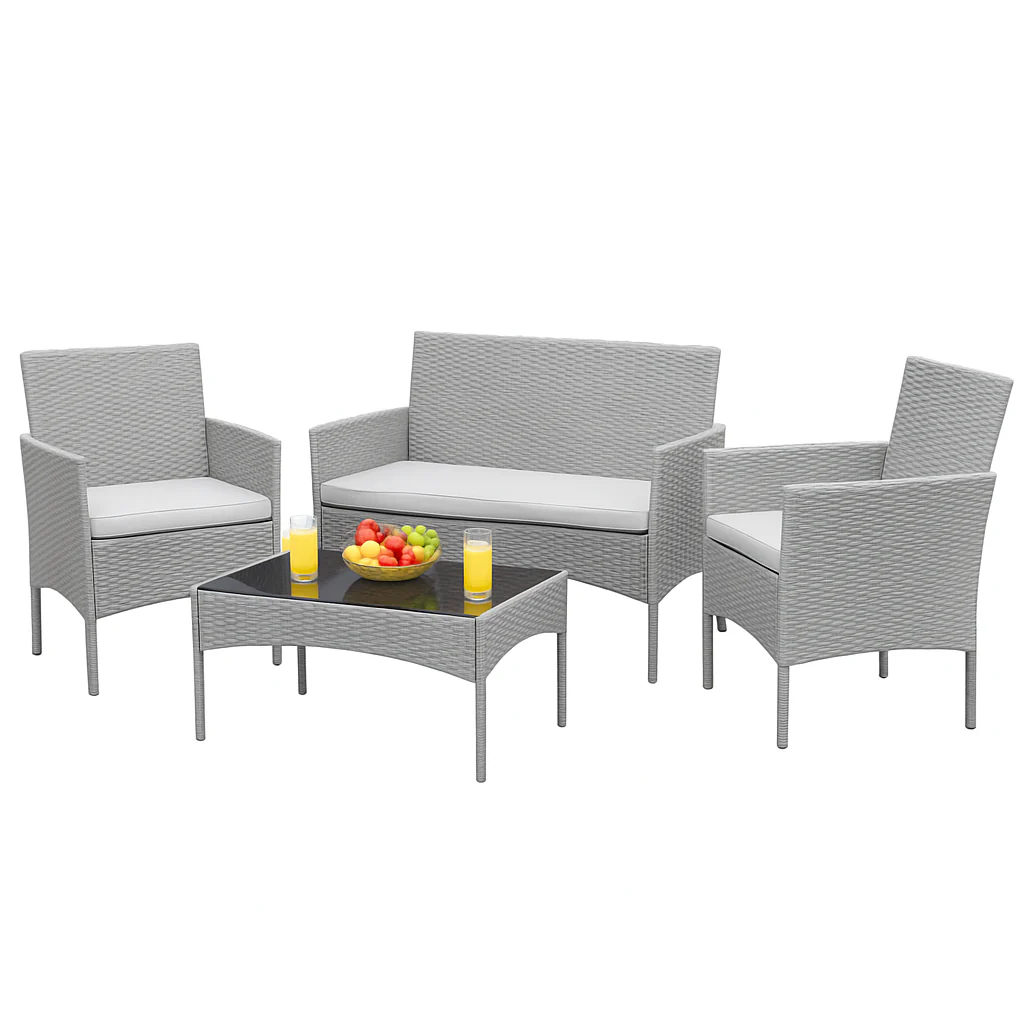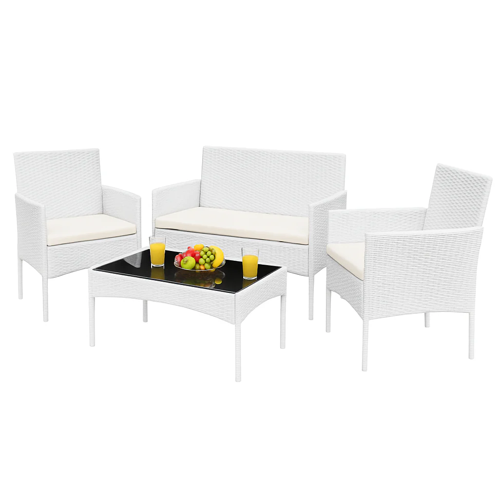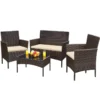 Enhance your poolside paradise with the elegant Poolside Perfection Rattan Chat Set. This four-piece set includes two armchairs, a loveseat, and a coffee table, all crafted in versatile brown rattan that complements any outdoor décor. Featuring plush off-white cushions, it offers both comfort and style for casual outdoor conversations. The rectangular glass-topped coffee table adds functionality, perfect for drinks or summer reads. Whether placed by a sunny deck or poolside, this set creates the ideal space for relaxation.