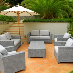 The Mediterranean Mediterranean Retreat Rattan Lounge Set brings the essence of coastal living to your outdoor space. Featuring a seven-seater sofa,( 4 armchairswith a warm rattan weave, this set embodies relaxation and style. Taupe cushions add a neutral, earthy touch, while the rattan coffee table completes the ensemble. Perfect for sun-drenched terraces or charming gardens, this lounge set provides comfort for leisurely afternoons and evenings outdoors.