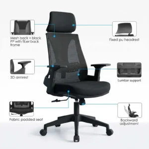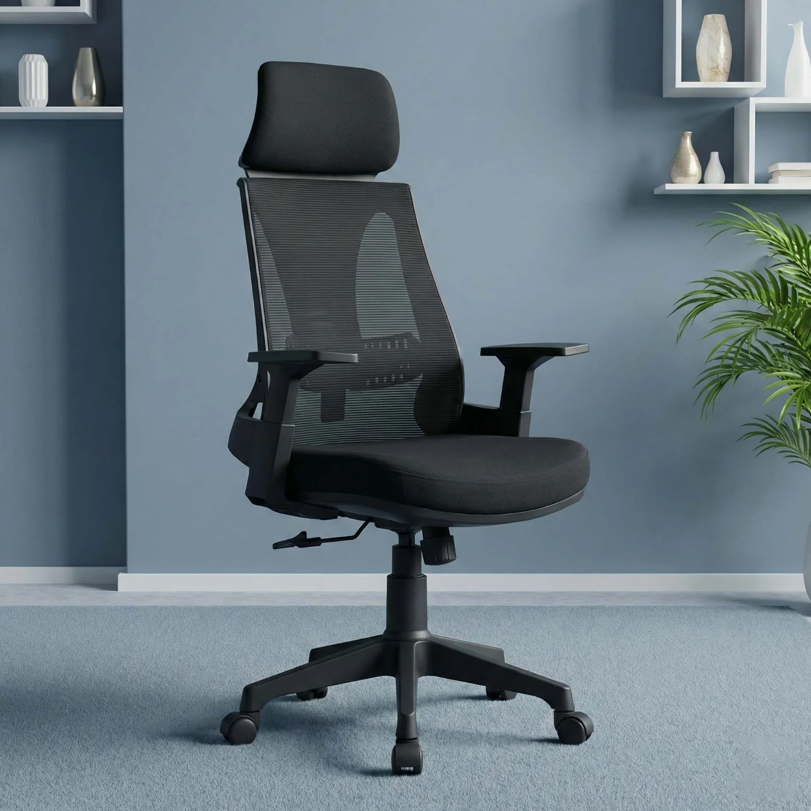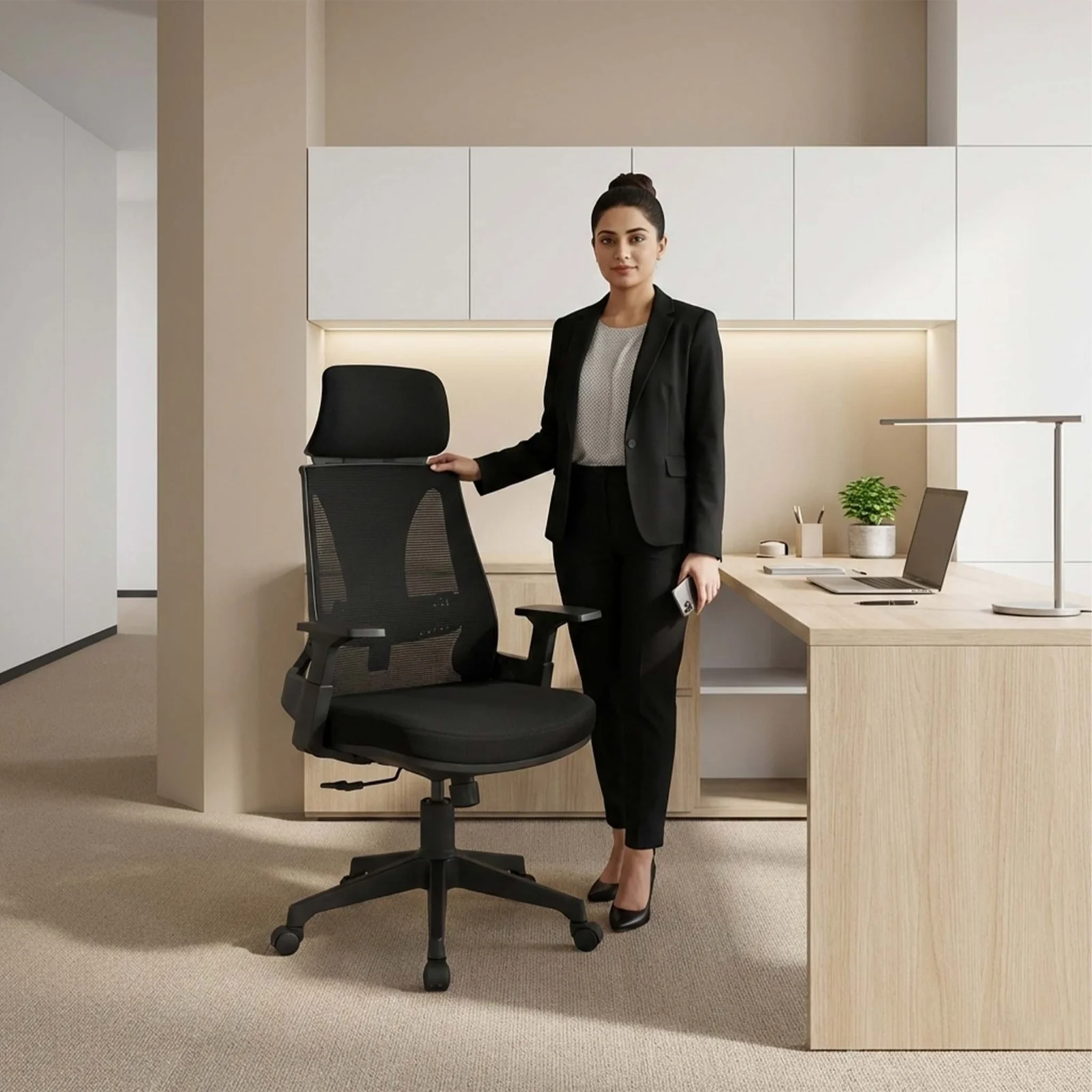 The chair includes an adjustable headrest and lumbar support that help maintain proper posture and improve sitting comfort. Its breathable mesh backrest allows better airflow, keeping you cool and comfortable throughout the day.