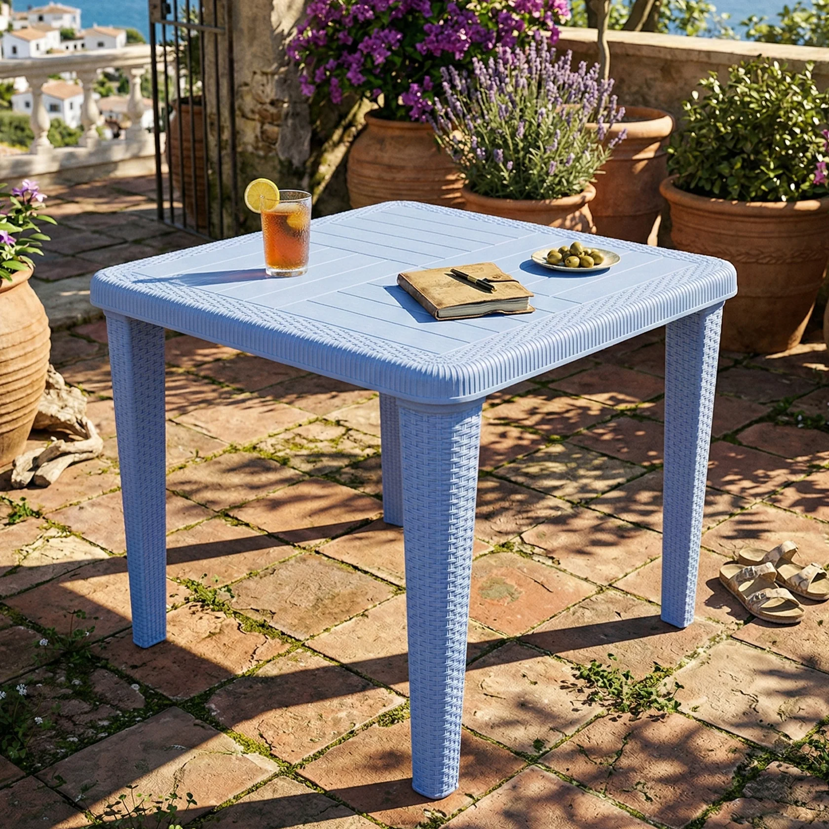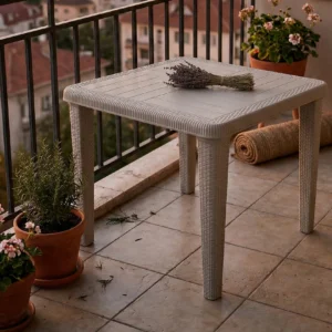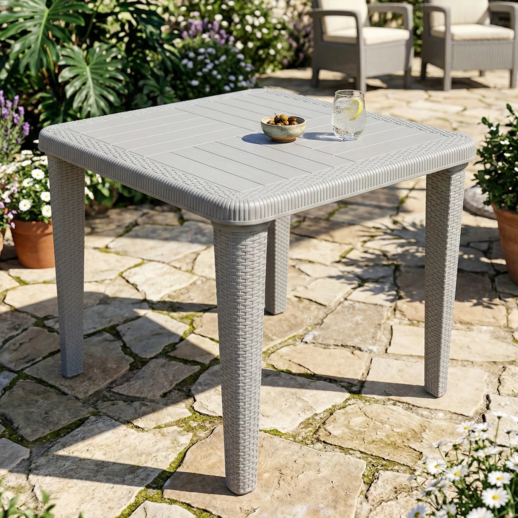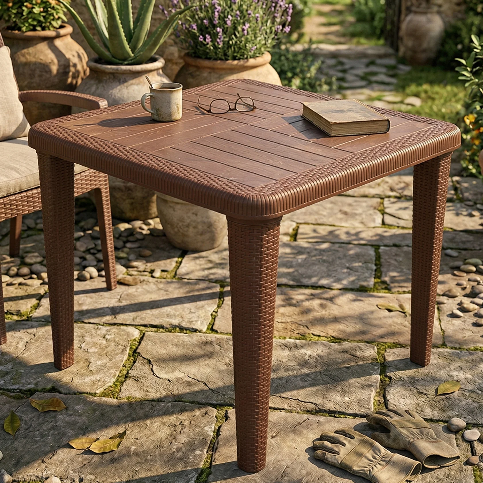 - Premium Rattan Aesthetic: The table features meticulously designed rattan-textured legs that offer the timeless look of woven wicker with the easy maintenance of high-quality resin.