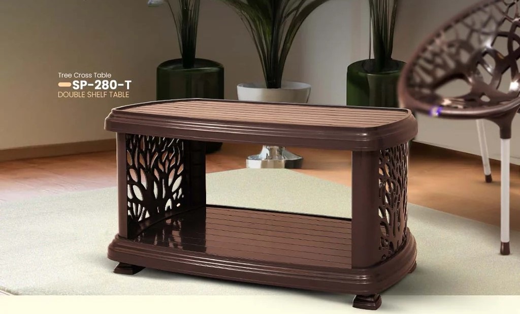 SAAB SP-280-T FULL PLASTIC DOUBLE SHELF TREE TABLE Pure plastic table. Exciting colors. Durable and long-lasting.