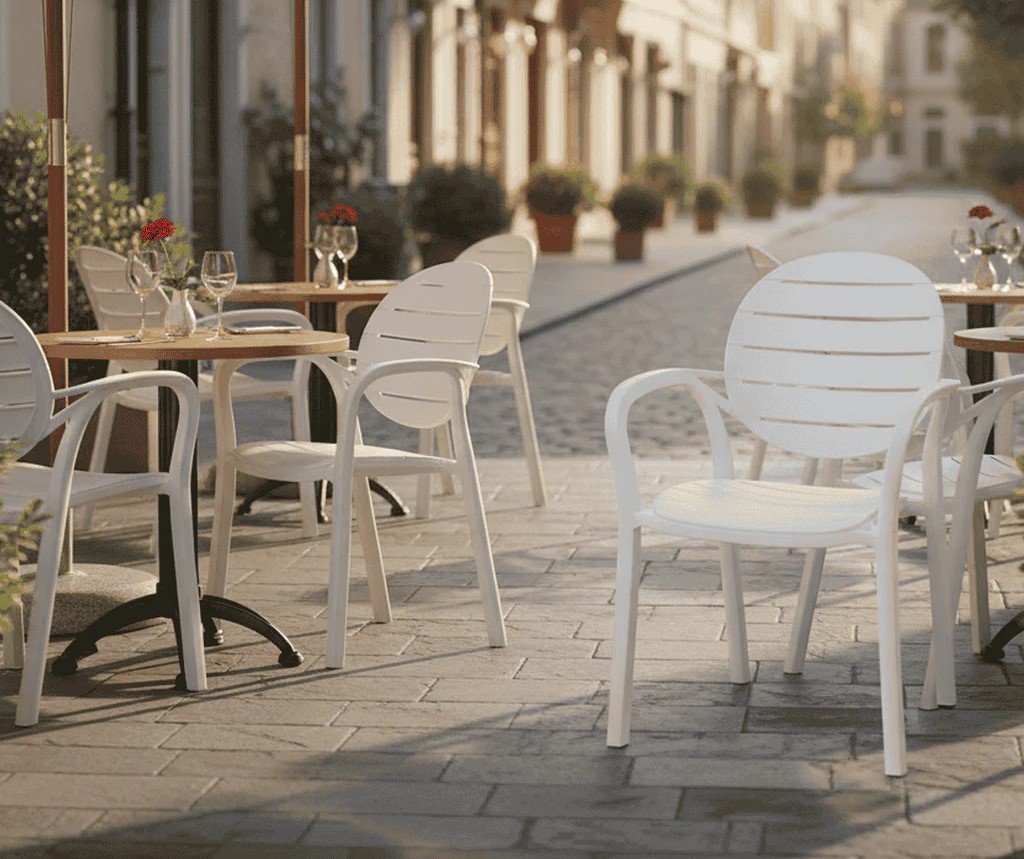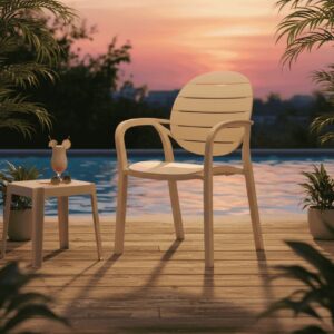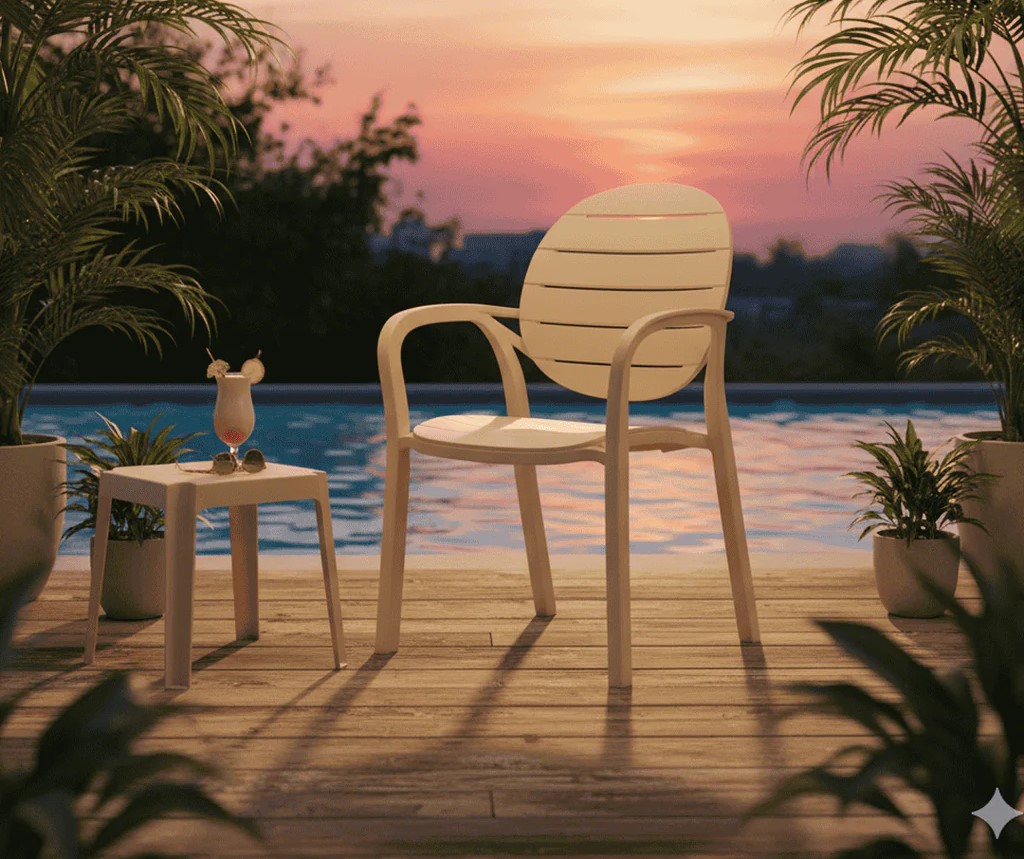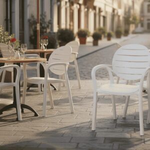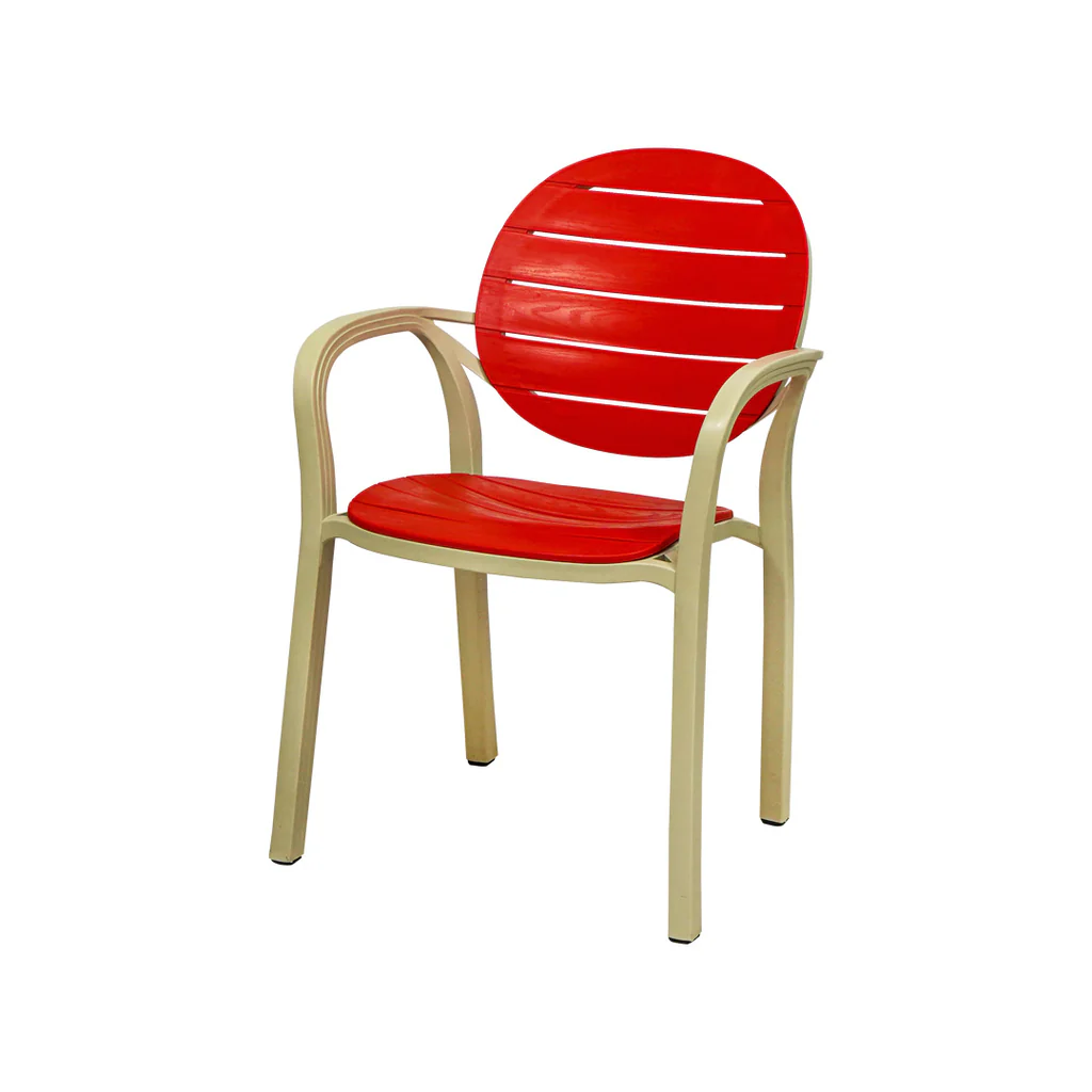 SAAB SP-675 New Full Plastic Indoor and Outdoor Spectrum Patti Chair. Comfortable & graceful Eye-catching two-tone colors Outdoor dining chairs with arms UV & weather resistant Non assembled…
