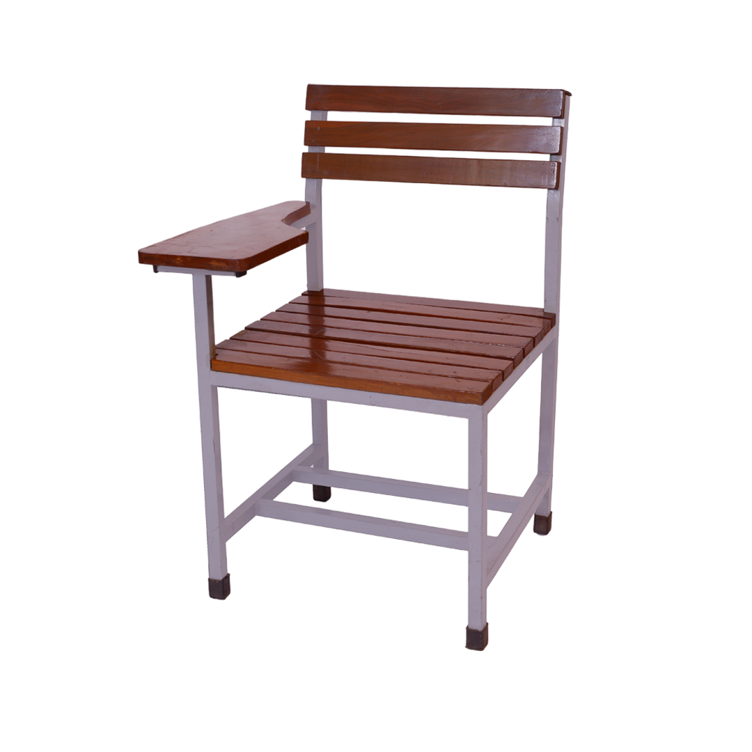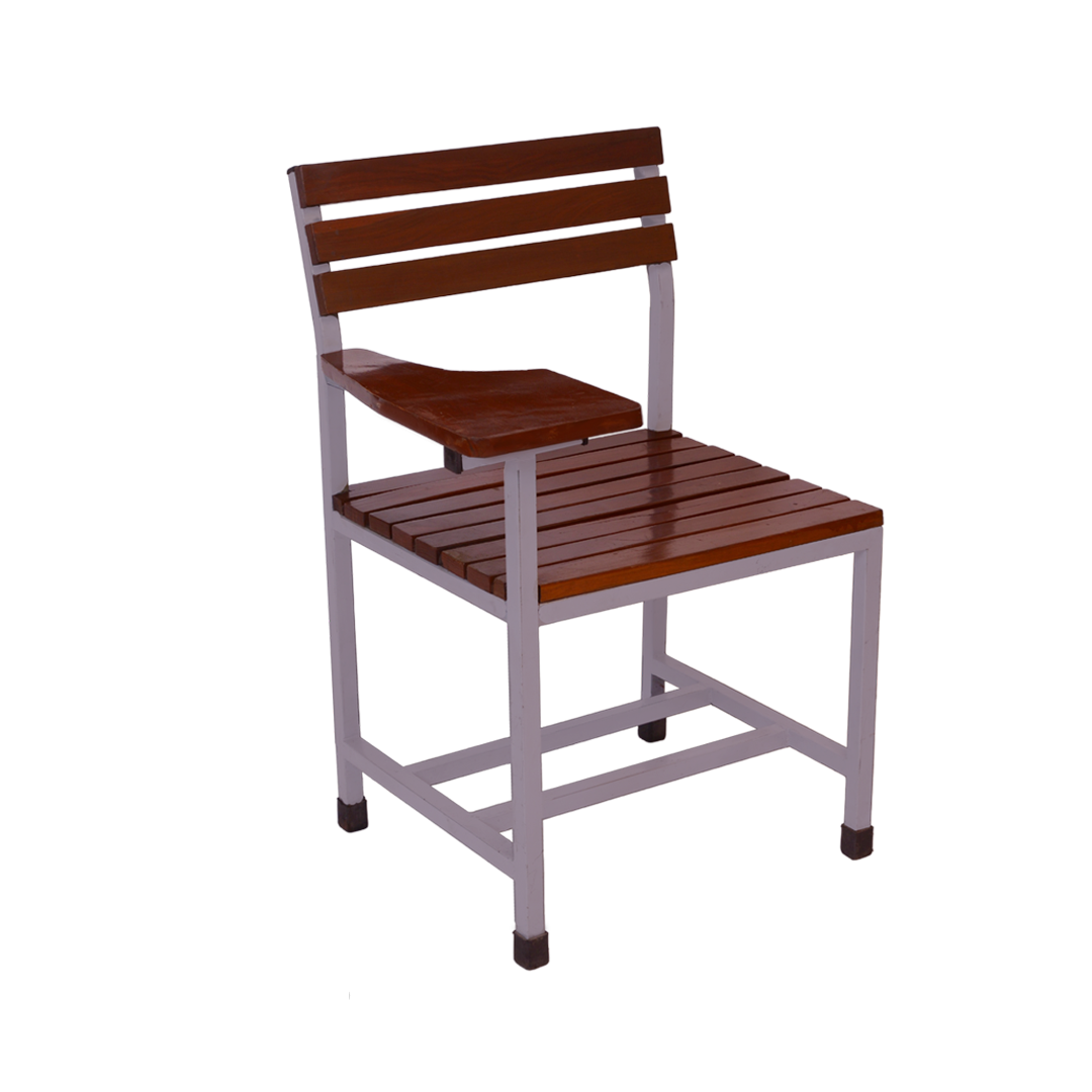 The WA-238-SW Wooden Study Chair blends solid wood warmth with a durable steel frame and handy writing pad, perfect for classrooms and study halls.